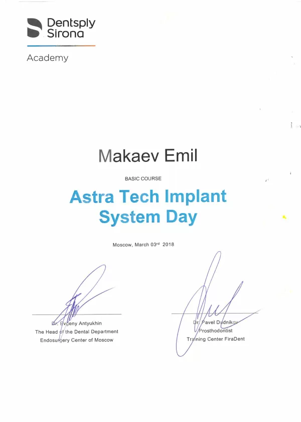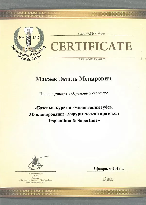 Принял участие в обучающем семинаре "Базовый курс по имплантации зубов. 30 планирование. Хирургический протокол Implantium & SuperLine"
