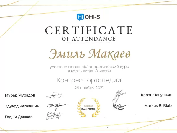 Сертификат о прохождении теоретического курса Конгресс ортопедии